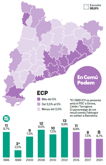 2) Evolución del PORCENTAJE DE VOTOS obtenidos por los distintos partidos en las elecciones regionales de Cataluña de 2021 (vía @elmundoes )