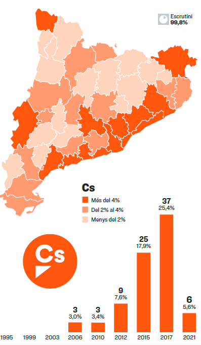). Su mayor fuerza está en las regiones costeras de Tarragona y Barcelona ("Tabarnia")