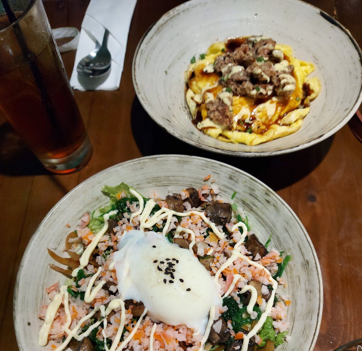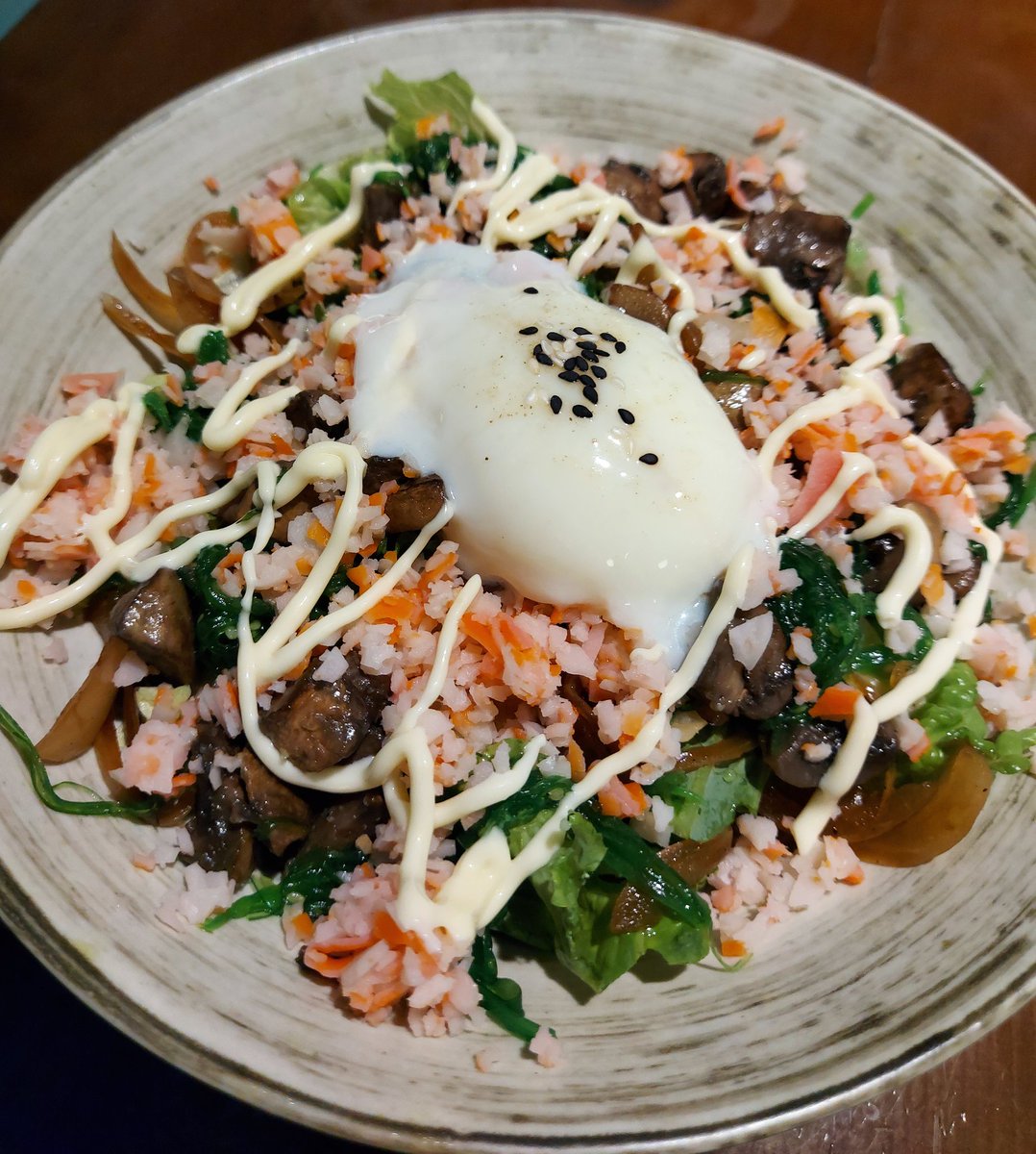 Ini salah satu comfort food. Base bisa pilih nasi atau salad, aku sih biasanya salad. Terus pilihan lauk utama ada macem2 banget daging, salmon, ayam dll, biasanya aku pilih wakame/idako. Lauk sampingan ada sayur2an lain kayak jamur, wortel, jagung dll.