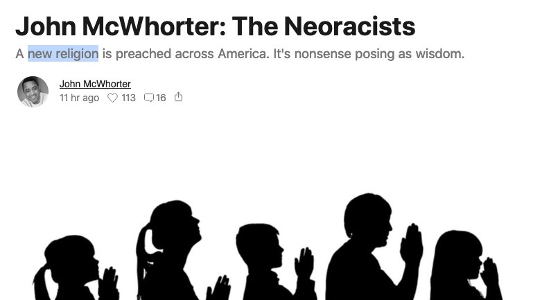 please stop calling things a "new religion" when the term you're looking for is "social movement that i don't like." persuasion.community/p/john-mcwhort…