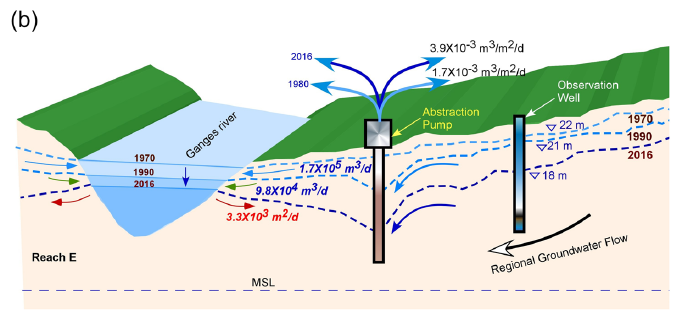 This is the work done by IIT KGP's @AbhijitGroup published in Nature (2018) on simulated GW-river interaction in Ganga in lower reaches.