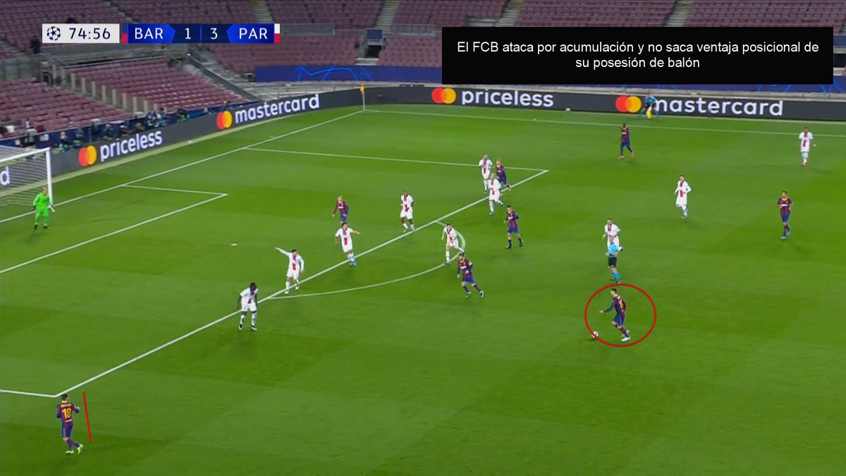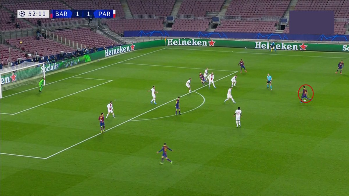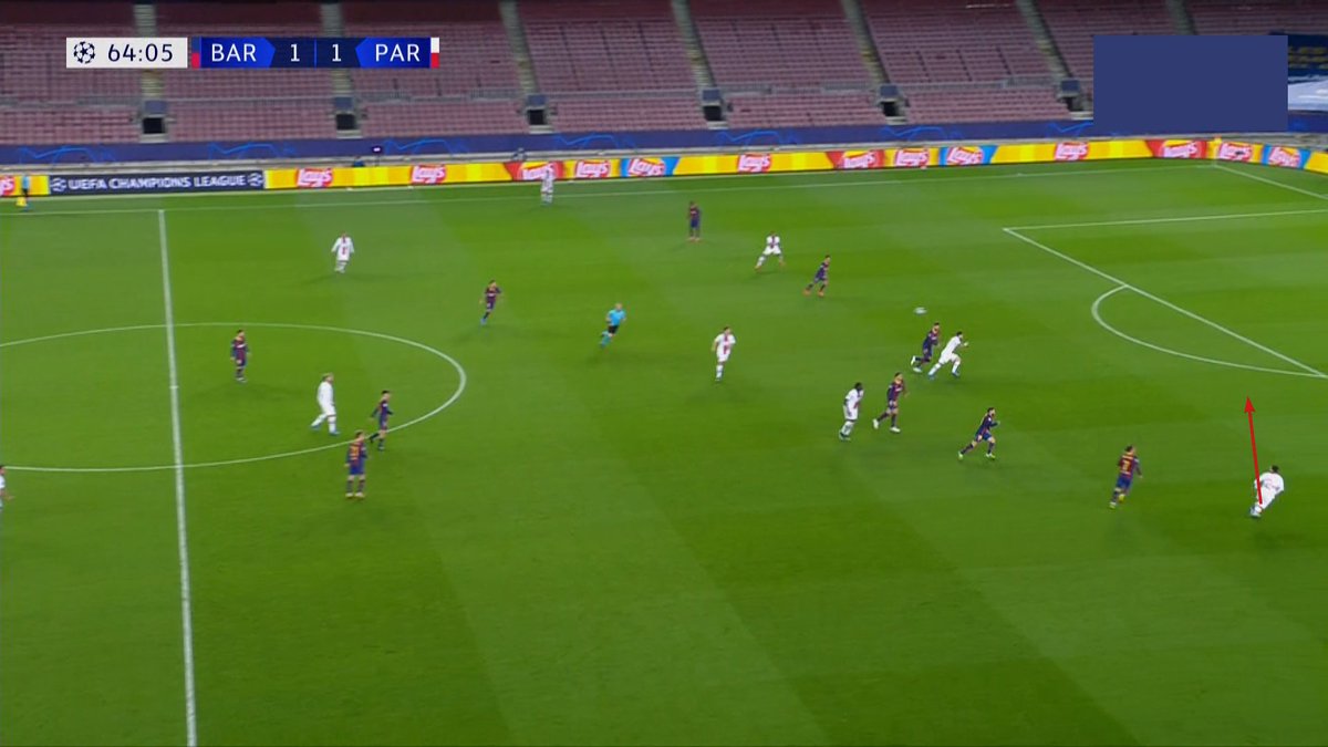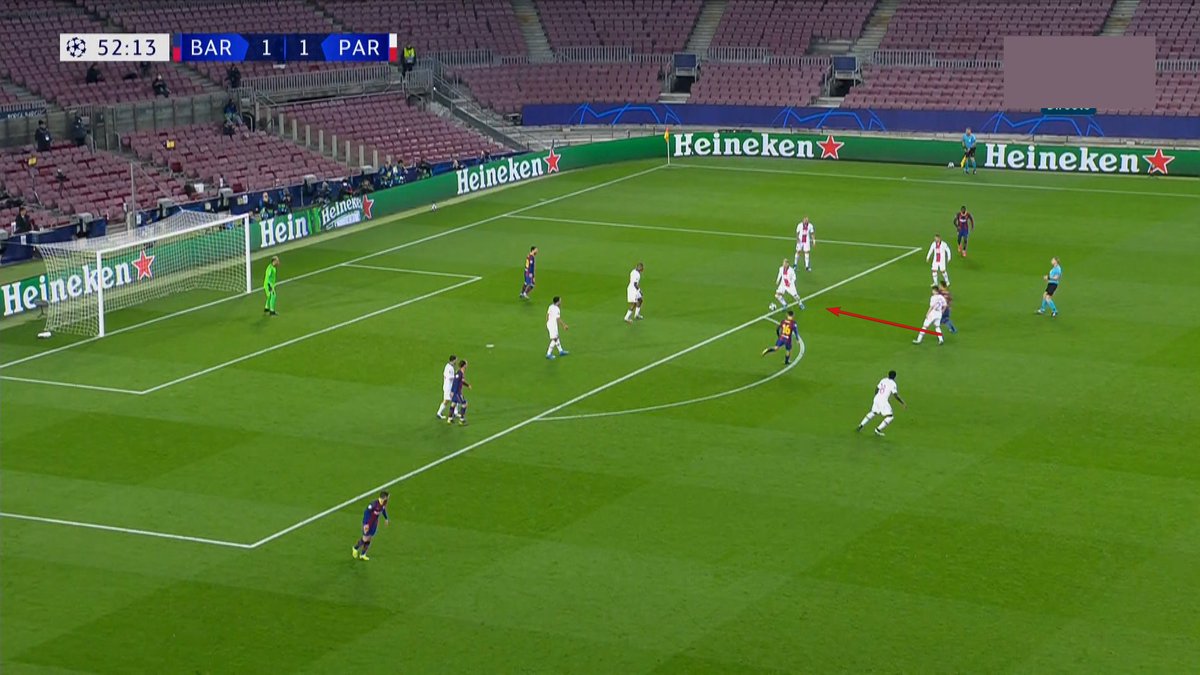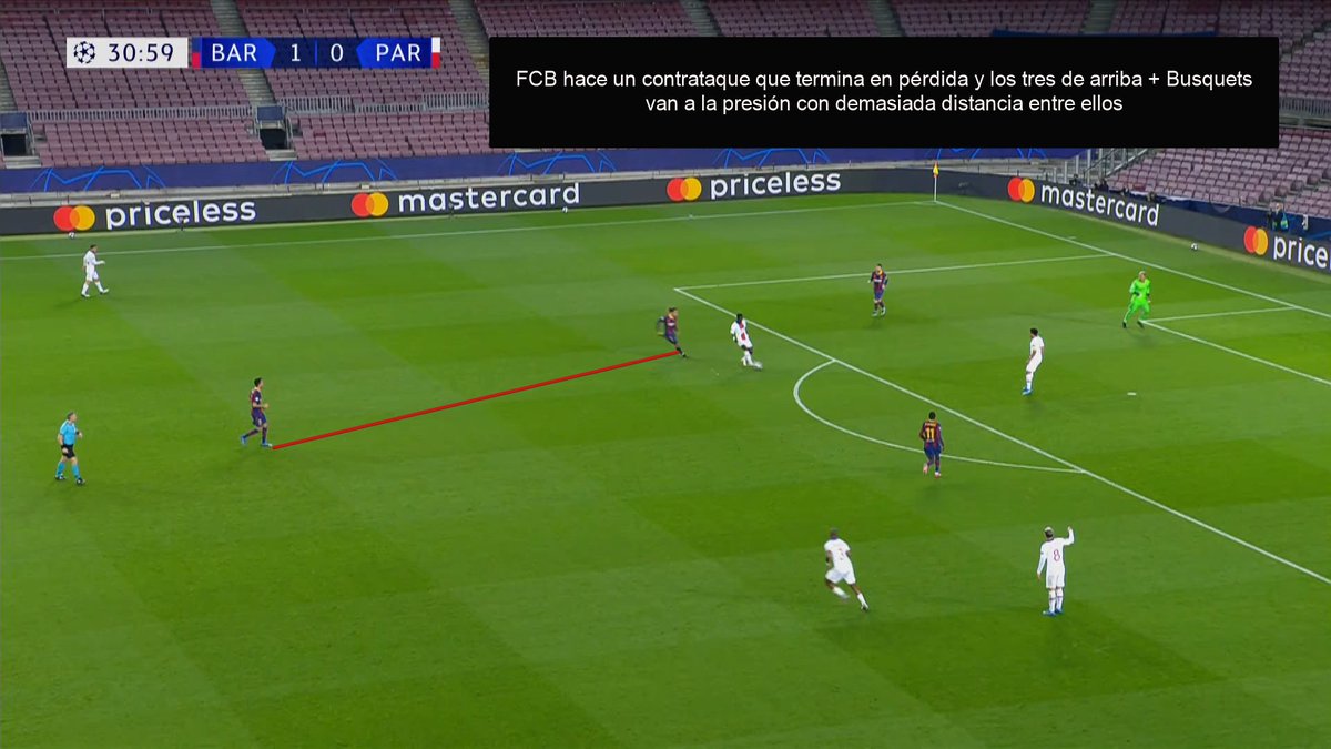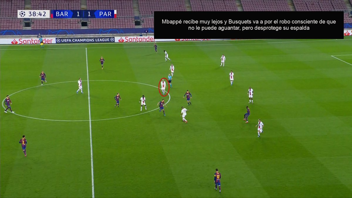 🧐Los costados de Busquets, como ya hemos señalado tantas veces y como expliqué la semana pasada ante el Sevilla, fueron un caramelito para pasadores como Paredes o Verratti y los apoyos de Mbappe o Kean.