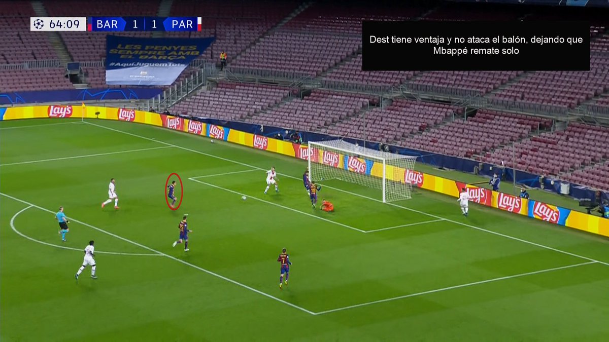 👇Lateral llega en carrera y Dembélé no reacciona