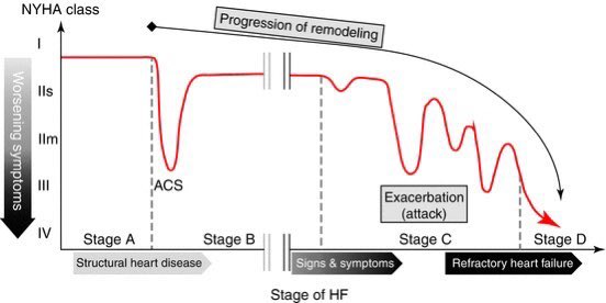 fungsi minum obat pada gagal jantung itu bukan untuk menyembuhkan, tapi untuk mengurangi progresivitas gagal jantung sampai ke stage C atau D (di gambar sebelumnya)