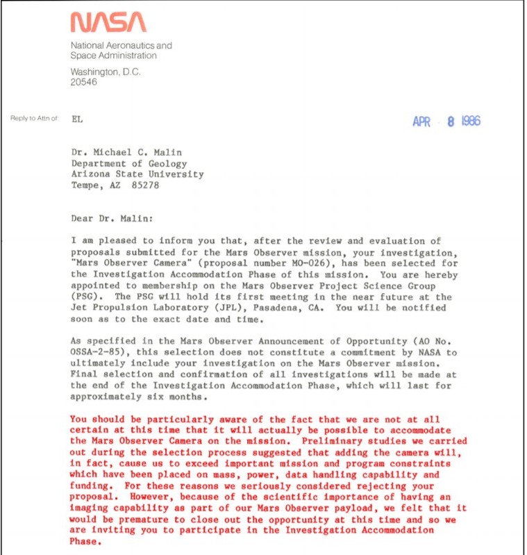 And America’s dreams of returning to Mars were severely curtailed with JPL's first in-flight loss in August 1993 of the Mars Observer which carried the Malin camera – more about which I will tweet about later