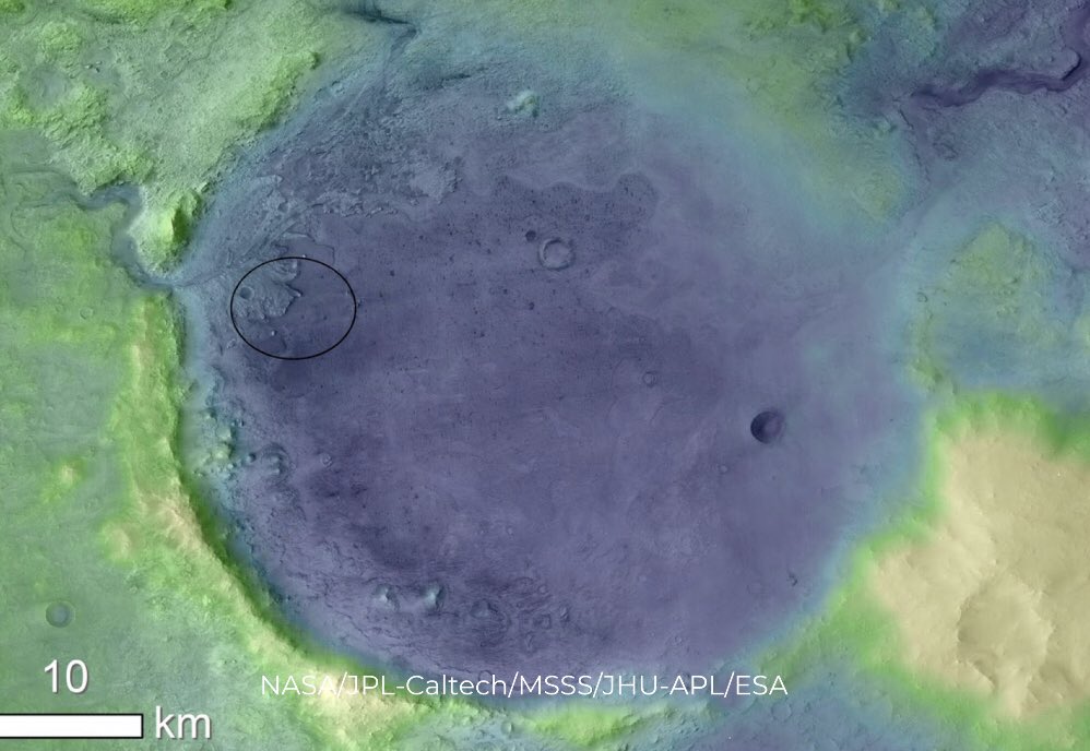 13) Gelelim ineceği Jezero Kraterine. Uzun zamandır buraya inilmek istenmiş olsa da Mars2020’nin EDL teknolojisi ile ancak cesaret edilebildi. Çünkü sizin zorlu bir alana nokta atışı yapabilmeniz hiç kolay değil. Nokta demeyelim de çember diyelim. Ama çember daralıyor. 🖖