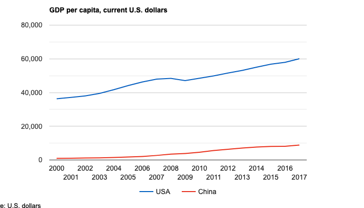 In the end though, as my soul mate also says, the thing that matters is real income per head, not nominal GDP, and on that score China may catch up a bit, but there's next to no chance of 'sorpasso' any time that makes a difference to us. End