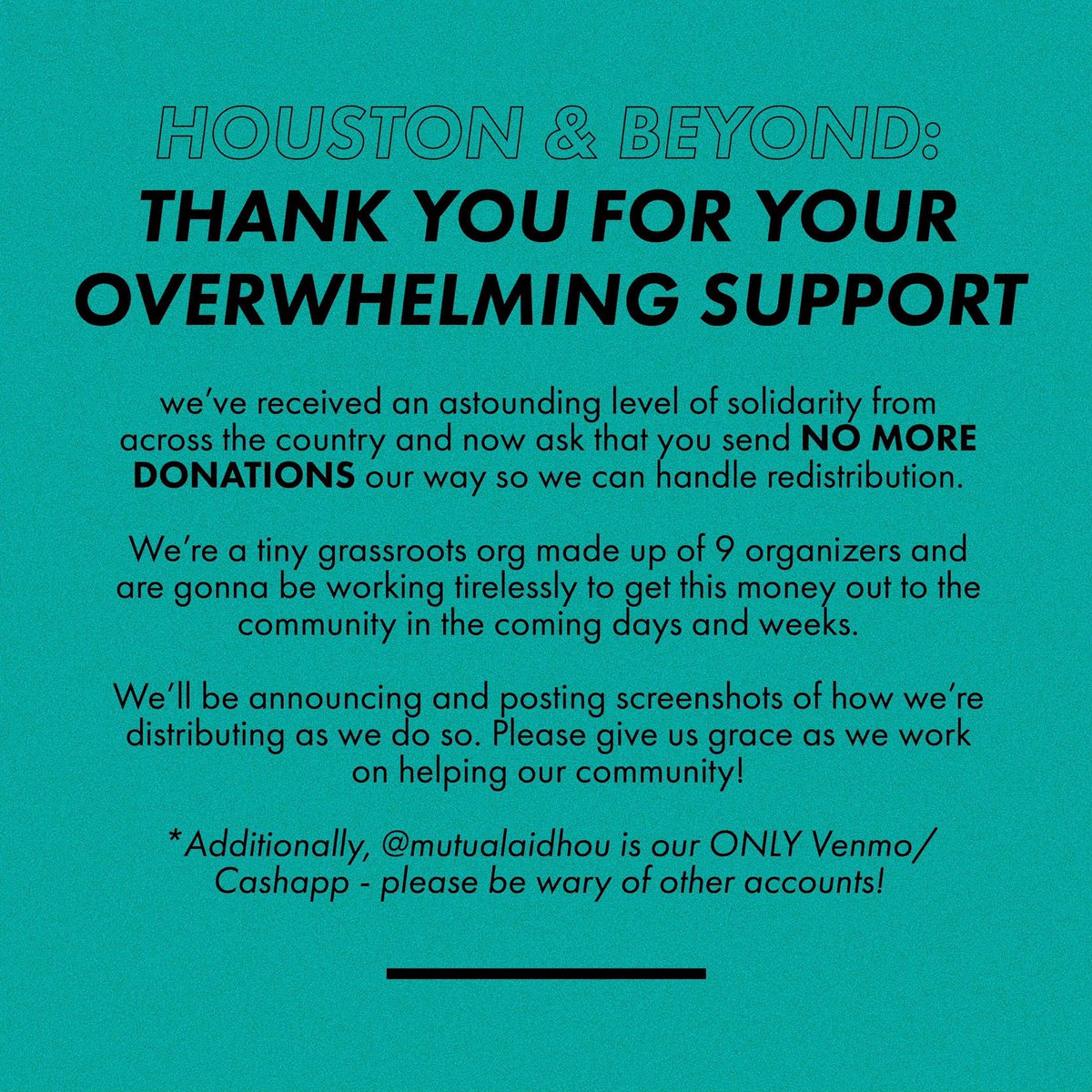 In the meantime, check our now-closed GoFundMe campaign for an ongoing list of other wonderful orgs to direct your donations to (3/4): gofundme.com/f/mutualaidhou
