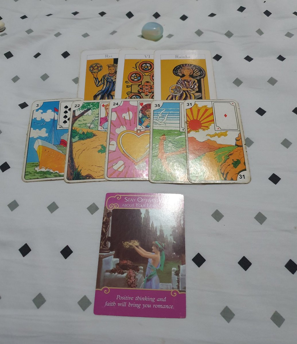 Montinho 3: aqui deve se tomar um pouco de cuidado, as cartas indicam uma energia negativa rondando a situação e eu senti muita energia espiritual negativa, portanto esteja atento se você está sofrendo algum ataque ou essa pessoa está. A relação em si também não me parece