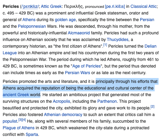 A recurring thing about "great men" is that, on top of having personal excellence, they are of course always lucky to be at the right place at the right time. Pericles showed up at the right moment to be a catalyst for transformation by broader forces beyond his influence