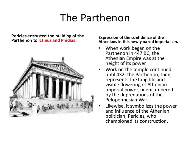 Consider the role of the Parthenon, which Pericles personally oversaw the construction of – an ambitious, awe-inspiring building to house goddess Athena – the patron and protectress of the city (and citizens) of Athens. Do any cities today have such searing aesthetic resonance?