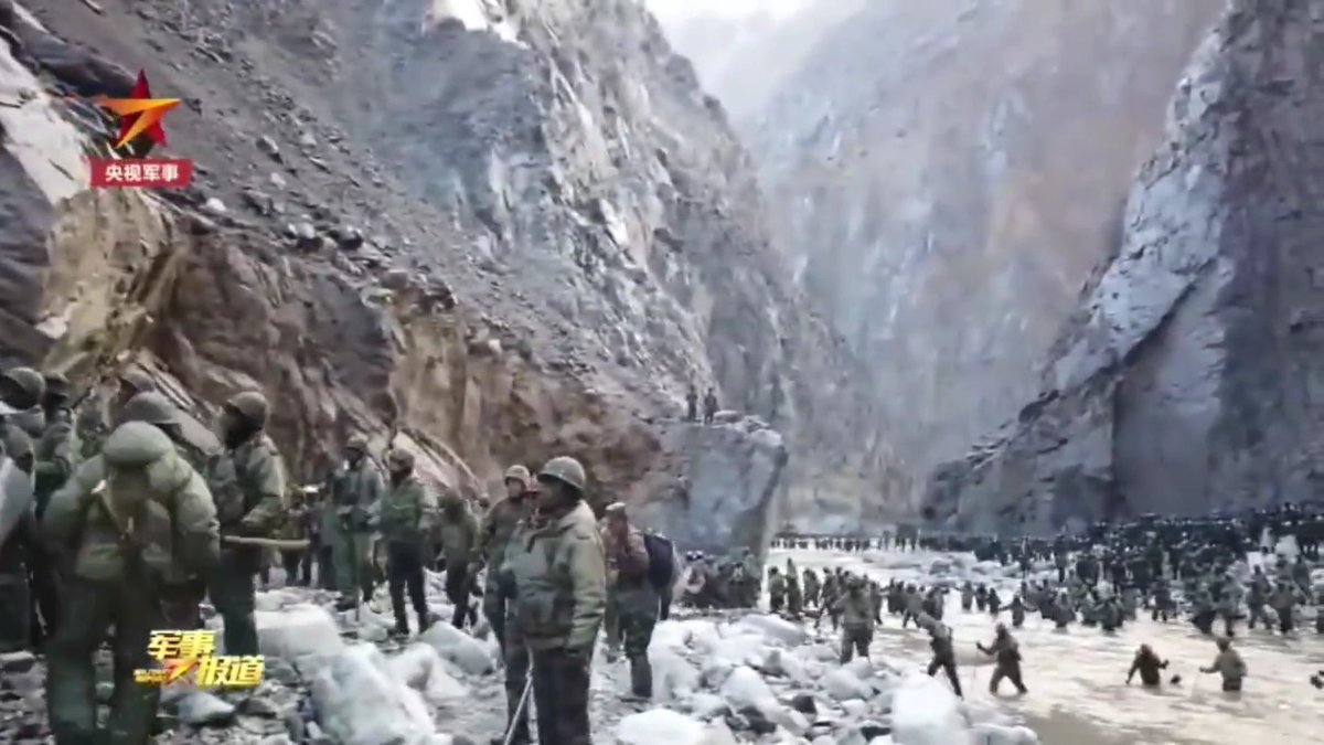 Chinese state media tonight released some footage from one of the clashes along the Galwan river that took place on June 15th. It's tricky to geolocate but my best idea (explained below) is that it shows Chinese forces SLIGHTY (<50m) beyond their interpretation of the LAC.