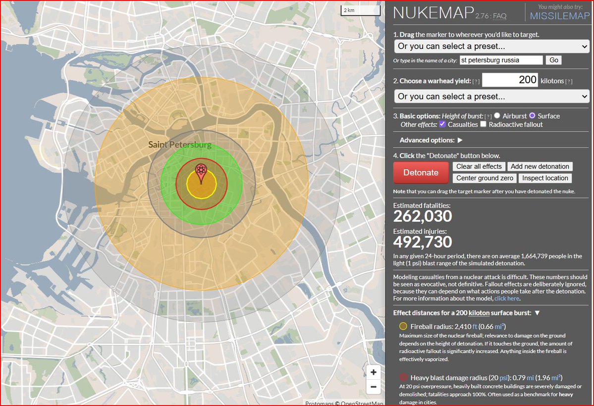 That means a 200 kiloton nuke in either St. Petersburg or Moscow, or dozens of tactical nukes into airfields & missile fields across Western Russia as an EU nuclear response to a Russian first strike are acceptable at a minimum.