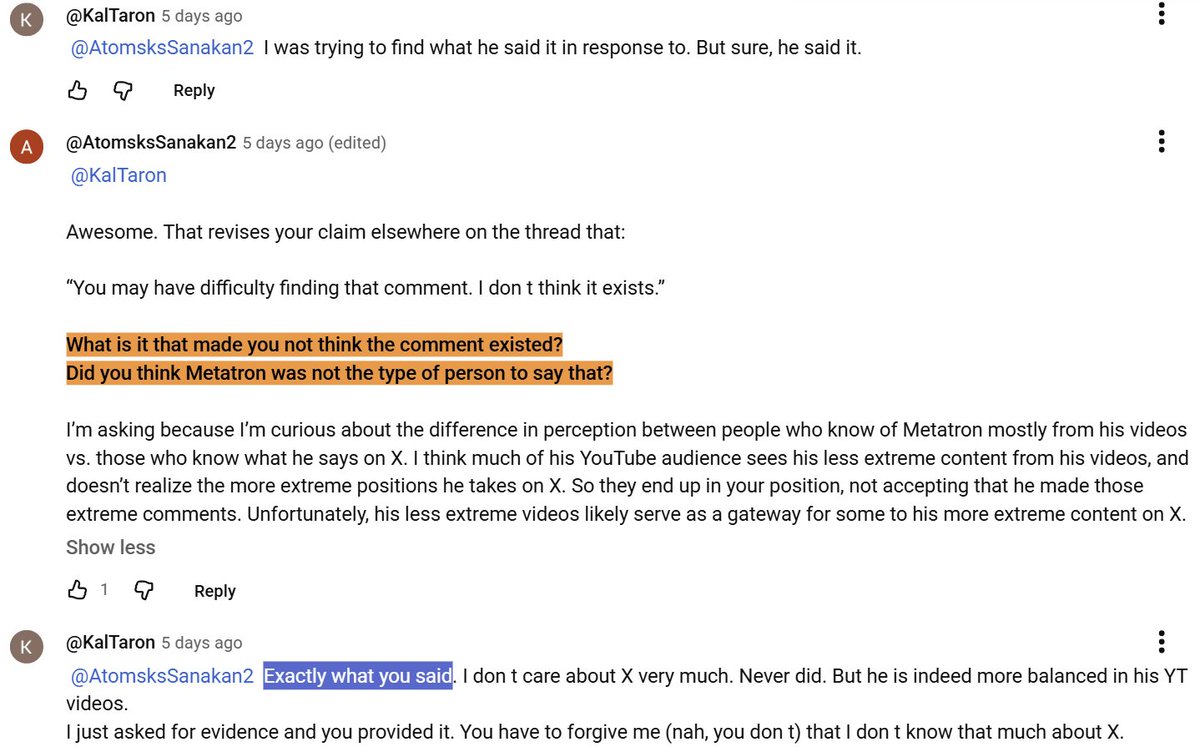 @pureMetatron Just noticed gateways from 'normie' YouTube to more extreme views on Musk's Twitter, promotion of Nick Fuentes, etc.