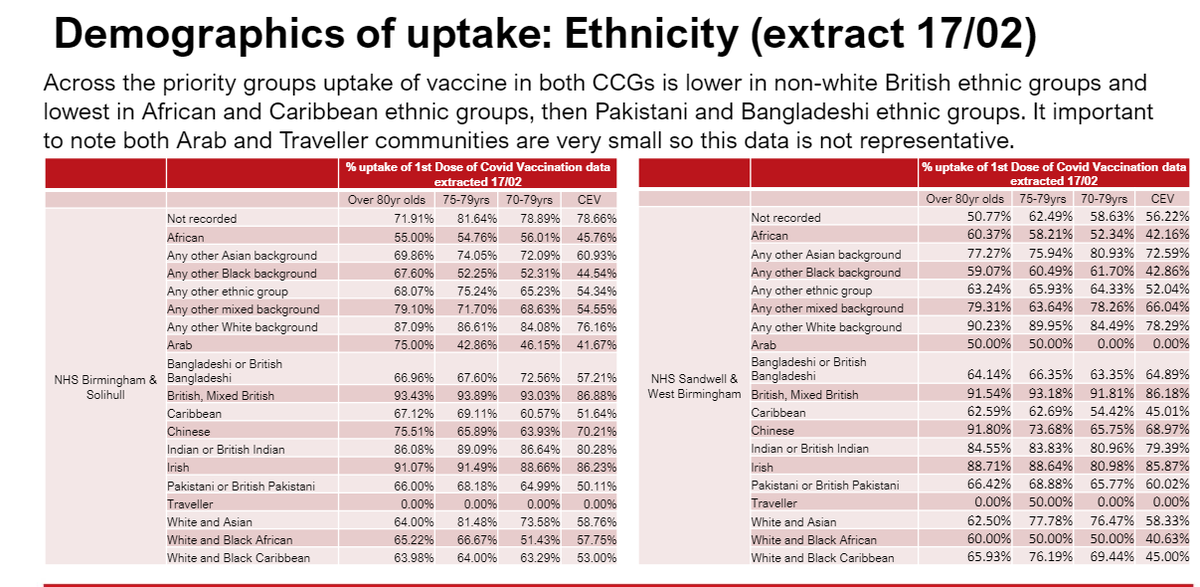 No surprise when you breakdown 80+ vaccination rates across Brum by ethnicity (Bham and Solihull CCG)