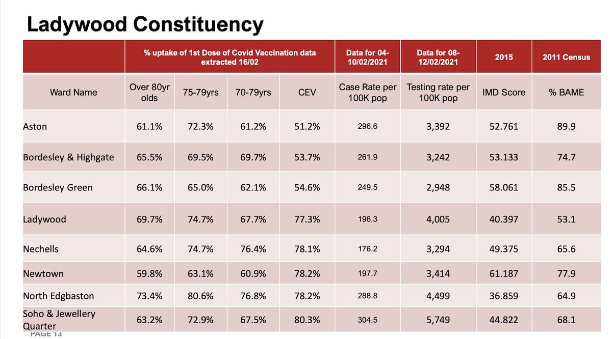 Look at these two slides, one for Ladywood constituency (inner city, BAME, poor) and one for Sutton Coldfield (richer, whiter). It's a completely different picture.