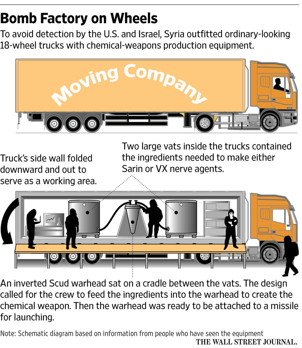 The UN document also mentions mobile CW production 'facilities' and a 2015 WSJ article explains what these were: Mobile mixing stations on trucks, where precursors would be mixed to create the chemical agents for Scud warheads in the field. wsj.com/articles/missi…