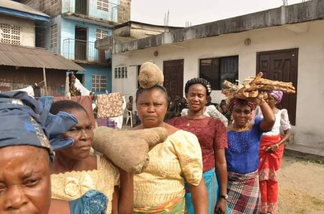 Okuru-kakakaka ceremony, a rite that stands the woman out from any crowd as okrika tradition demands. It commences with the groom accompanied by family members and friends of the bride’s compound Women carry requested items, household items, and traditional attires necessary to