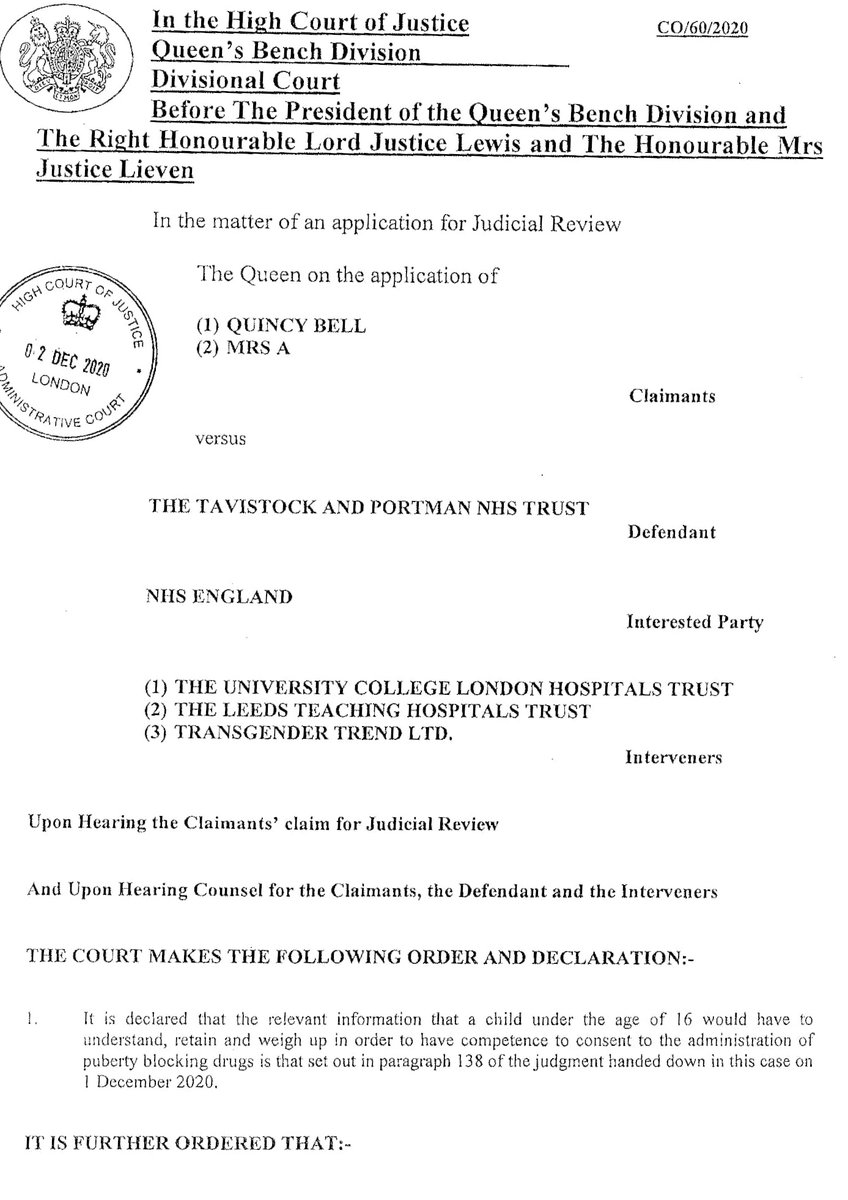 3/ The Tavistock implanted the order almost immediately by amending its contract with GIDS, despite the stay. The rationale for that hasn’t changed. The judgement & Order were so emphatic that I think it would be a brave or foolish clinician that would not seek to implement it.