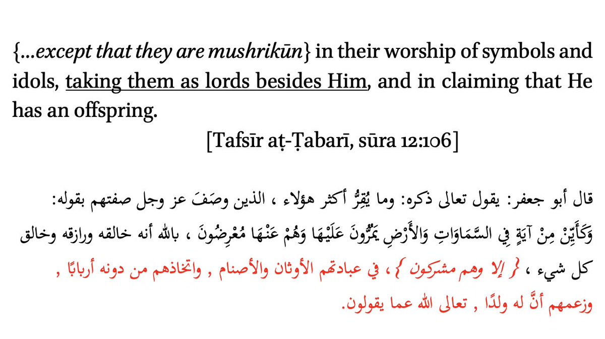 For those new to this topic, Salafis use this to say that the mushriks did not believe their idols to be ๐๐๐๐๐ (having ownership/power over creation), since they believed Allah ๐๐๐๐๐ had this status (๐ก๐๐คโ๐ฬ๐ ๐ข๐-๐๐ข๐๐ขฬ๐๐๐ฆ๐ฆ๐โ).