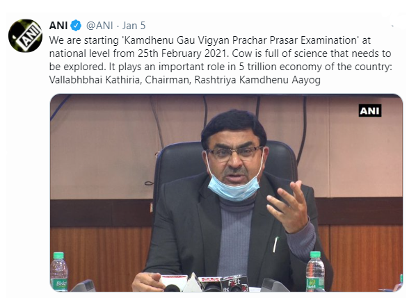 Ekonomi India akan bangkit dengan Sains Sapi! Pimpinan institusi pemerintah yg terlibat ini mengklaim dirinya dokter ahli bedah kanker lho. Jadi sains ini bukan main2, sapi bisa memecahkan semua masalah di India.😂😂