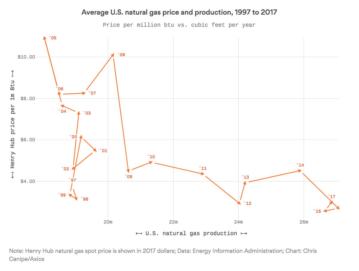 Let's do one more: the connected scatterplot. The CS shows two time series simultaneously—one each along horizontal and vertical axes—and are connected by a line to show relationships of the points over time. It's a great possible alternative to the dreaded dual axis chart.