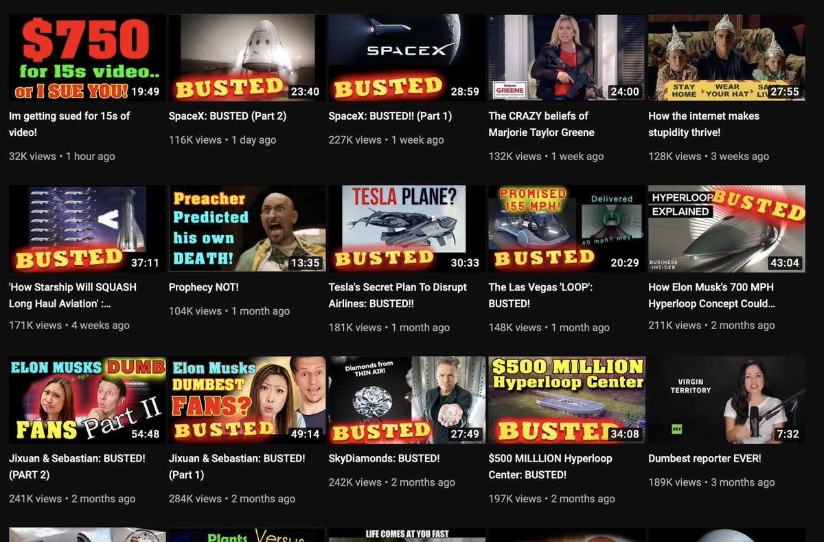 For a channel that is filled with videos "busting" everything from spacex, Elon Musk, etc: it is not very surprising that this hate is what Phil wishes to use his channel to spread throughout the internet, and the world, and upon smaller creators like me. Image