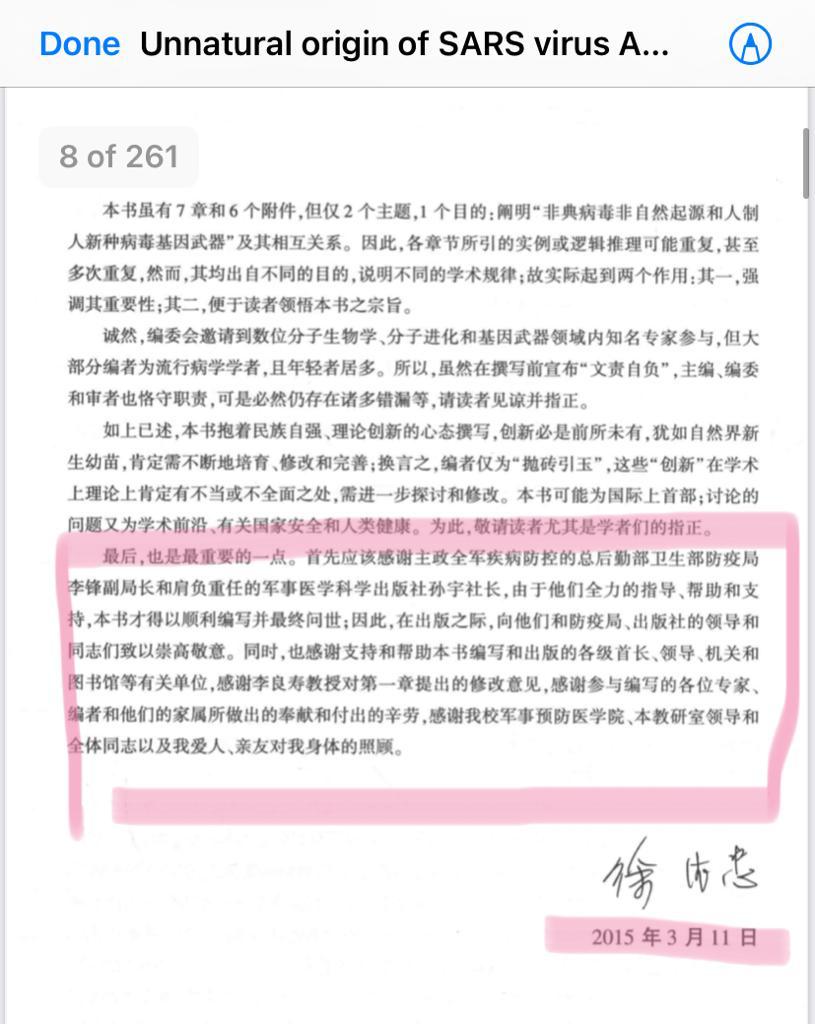 3. General XU acknowledged to PLA-CDC (LI Feng’s place)and the PLA Press and all senior PLA/China government officers fully support in writing the textbook.