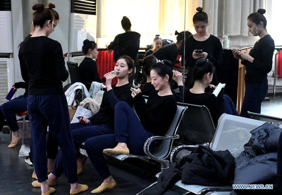 Para penari Teater Zhengzhou di Henan. Waktu latihan dan waktu istirahat.