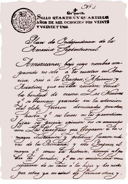 Con el respaldo de la clase política novohispana, de una parte del ejército permanente, milicias provinciales y urbanas y de los insurgentes del Sur, el 24 de febrero de 1821 Agustín de Iturbide dio a conocer su plan político en Iguala, en el actual estado de Guerreo.