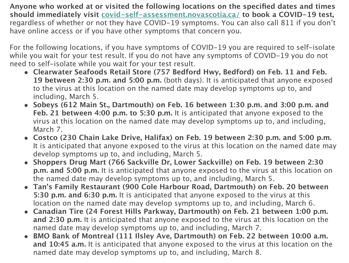 Here it is ... a new whack of potential COVID exposures, it 2 parts...