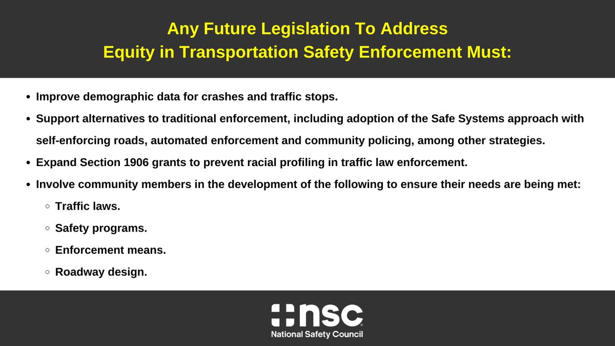 6/8 @NSCsafety encourages the Subcommittee to consider these four points in any future legislation to address equity in transportation safety enforcement here ⤵️