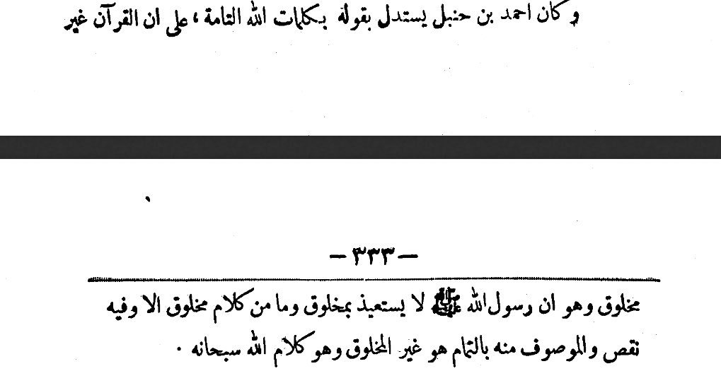 Ahmad ibn Hanbal used to infer from the words "the perfect words of Allah" that the Quran is uncreated. This is because the Messenger of Allah (peace be upon him) does not seek refuge in something created