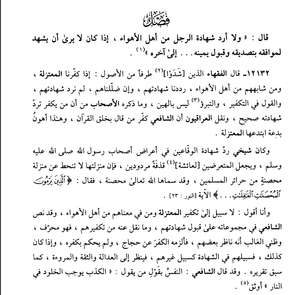 “And the Iraqi scholars transmitted that Ash-Shafi’i excommunicated the one who said the Qur’an is created, and this is a least of innovation innovated by the Mu’tazilah.”