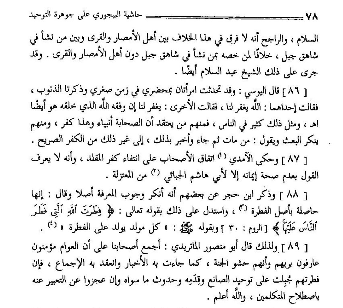 Ibrahim Al-Baijuri Al-Azhari (died 1276 AH) said: