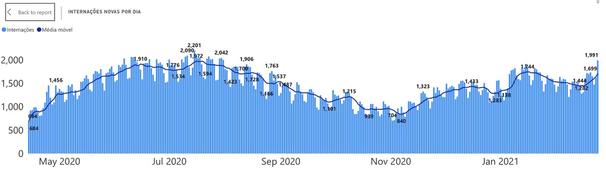 Com 1991 internações este foi o maior numero em um dia NOS ULTIMOS 7 MESES