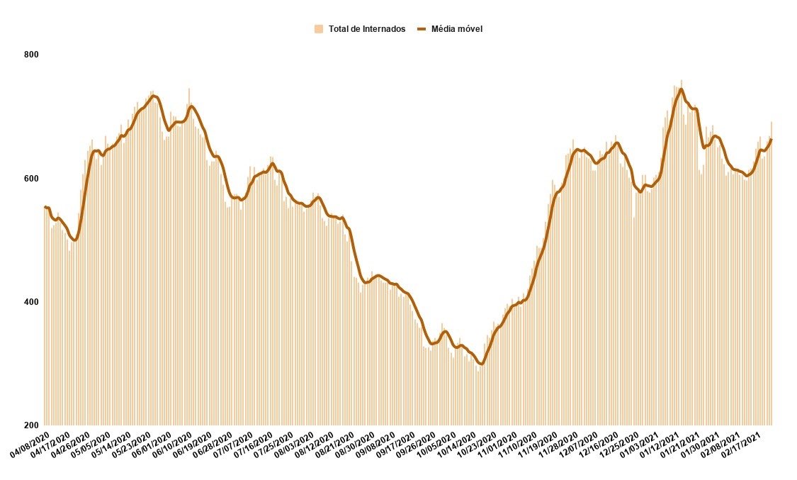 Alguns chamam atenção para a queda recente, eu destaco que ainda internamos 100 pessoas por dia a mais que no começo do ano.