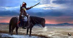 Au bord de l’océan, il descendit de sa jument et s’avança à l’intérieur des eaux jusqu’à que son habit soit trempé et déclare :