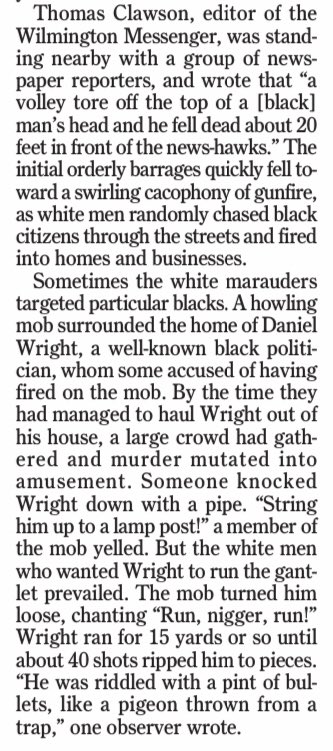 Adding one piece of historical context here: The massacre happened in early November, just after the election, because a pre-election campaign of voter suppression and intimidation was deemed by political and business leaders to have not been successful enough #ncpol