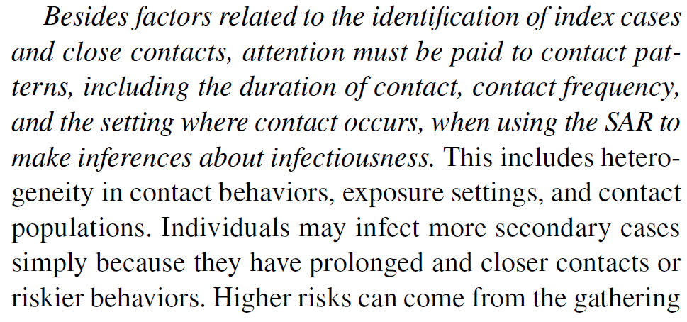 differences in # & type of contacts including setting & activity (indoors, singing, temp/RH, etc.), & susceptibility of contacts? We have evidence that all of these things likely matter, but evidence linking viral loads of index patient to infection of their contacts was missing.