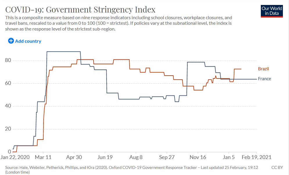 bien Macron que Bolsonaro sur la stratégie d'endiguement😅 (à verifier ... la courbe est tellement synchrone que y a