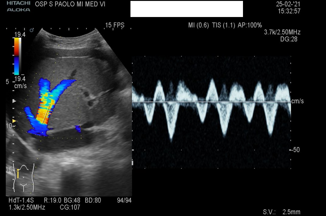 reveal an unspecific hyperdynamic state in hepatic vessels with a higher diastolic arterial