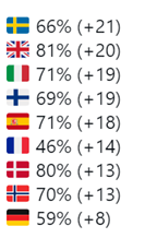 We have conparative vaccine attitudes before the comments. This was growth in pro-vaccine sentiment from November to January. France is a consistent outlier for hesitancy but was going up from very low base before Macron comment. Germany less of a rise before regulator spoke