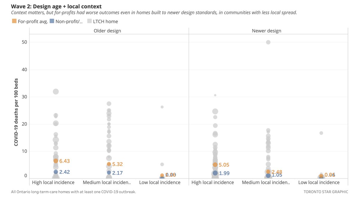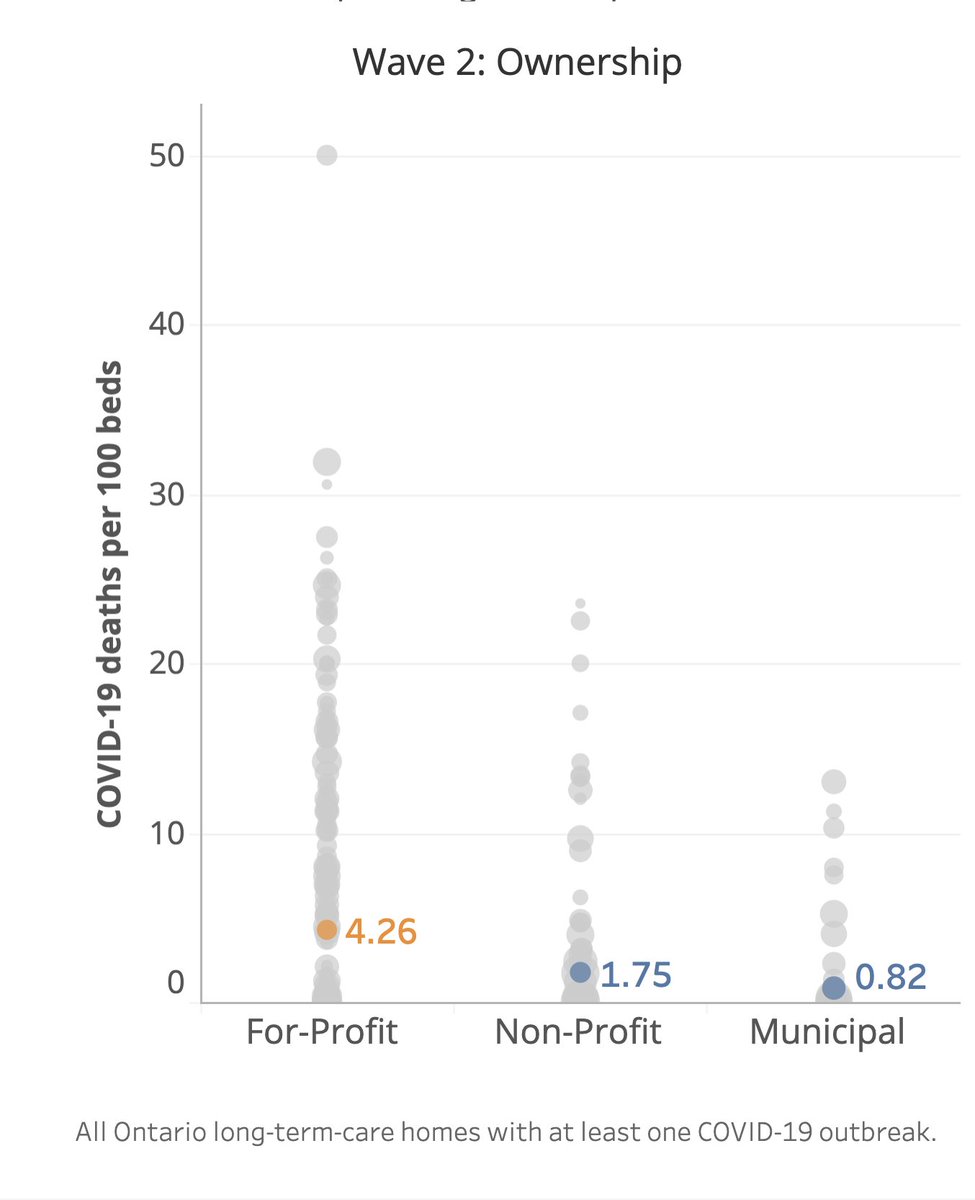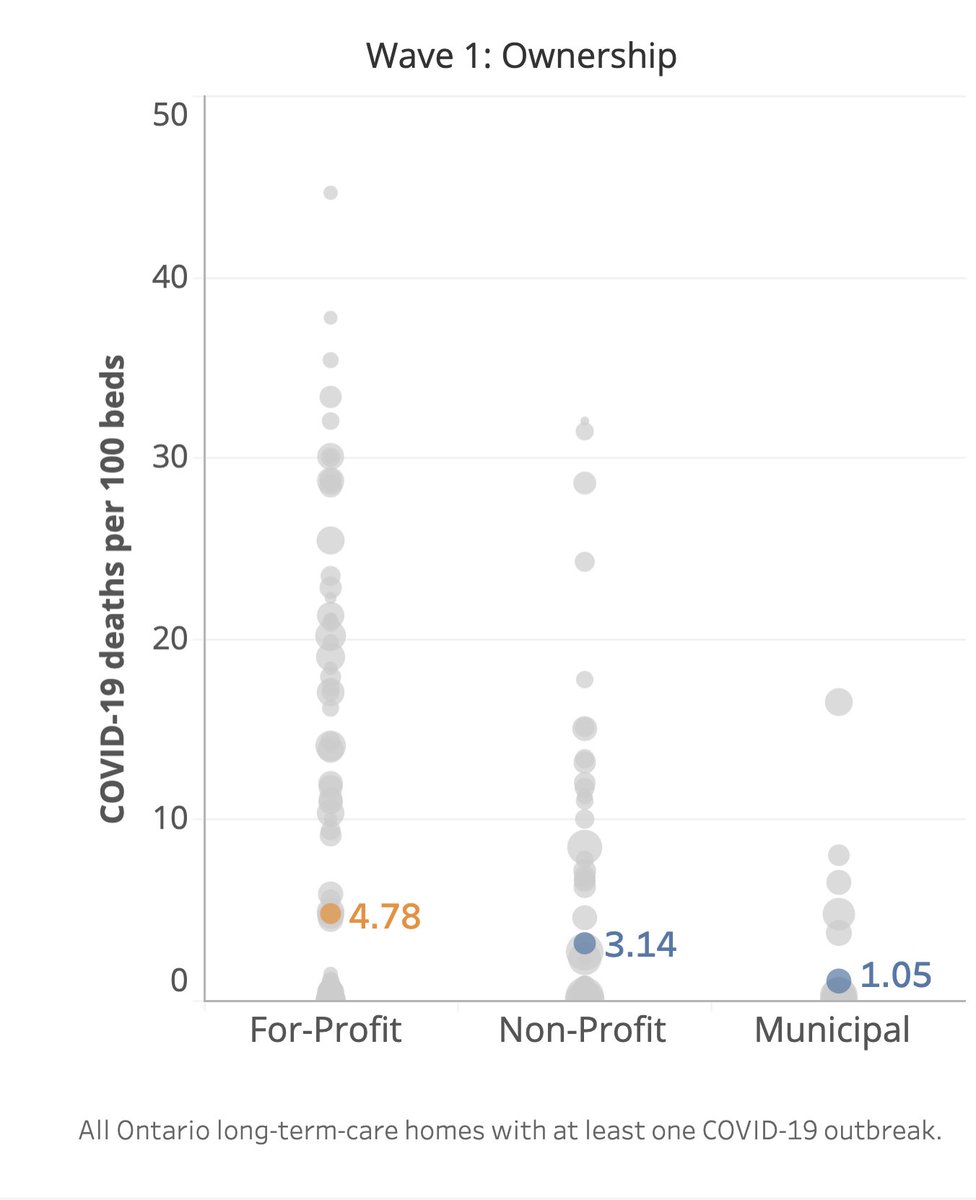 1/n There are a few things we couldn't get into in our story this morning on the higher death rates in for-profit LTC homes, including the extent to which Wave 2 was relatively much *worse* in for-profits.