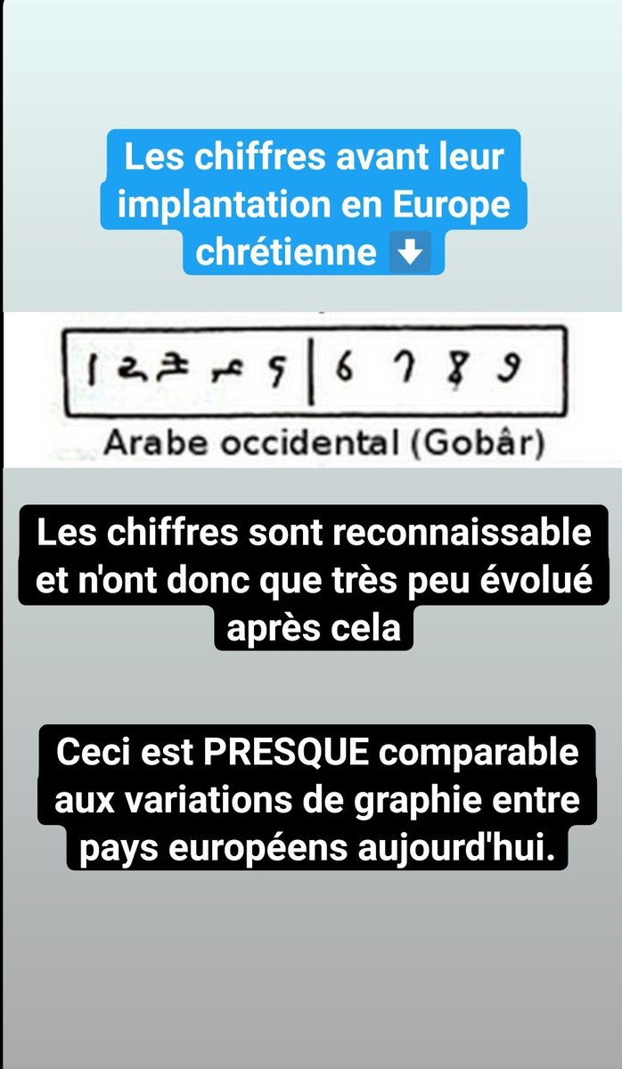 Progressivement ce système se déplaça vers les terres du couchant arabe (Al-Maghrib), pour enfin devenir les chiffres que nous connaissons aujourd'hui, dont la forme s'est donc établie au Maghreb et à Al-Andalus.
