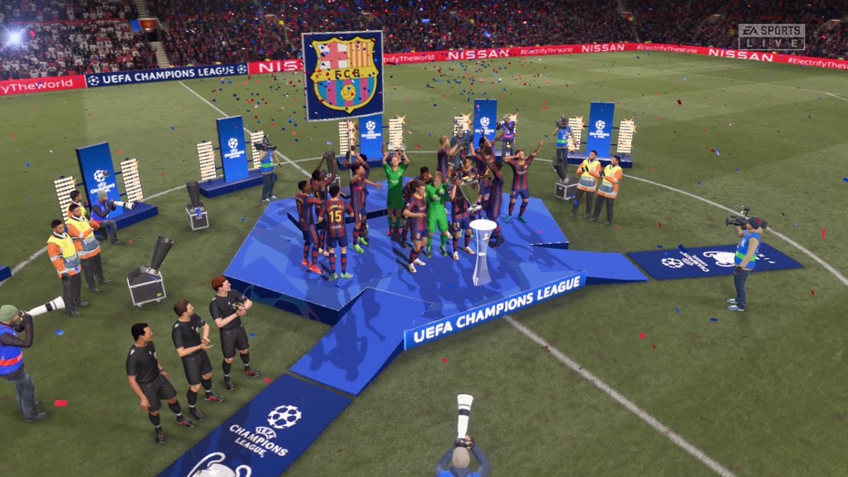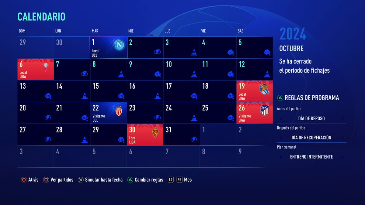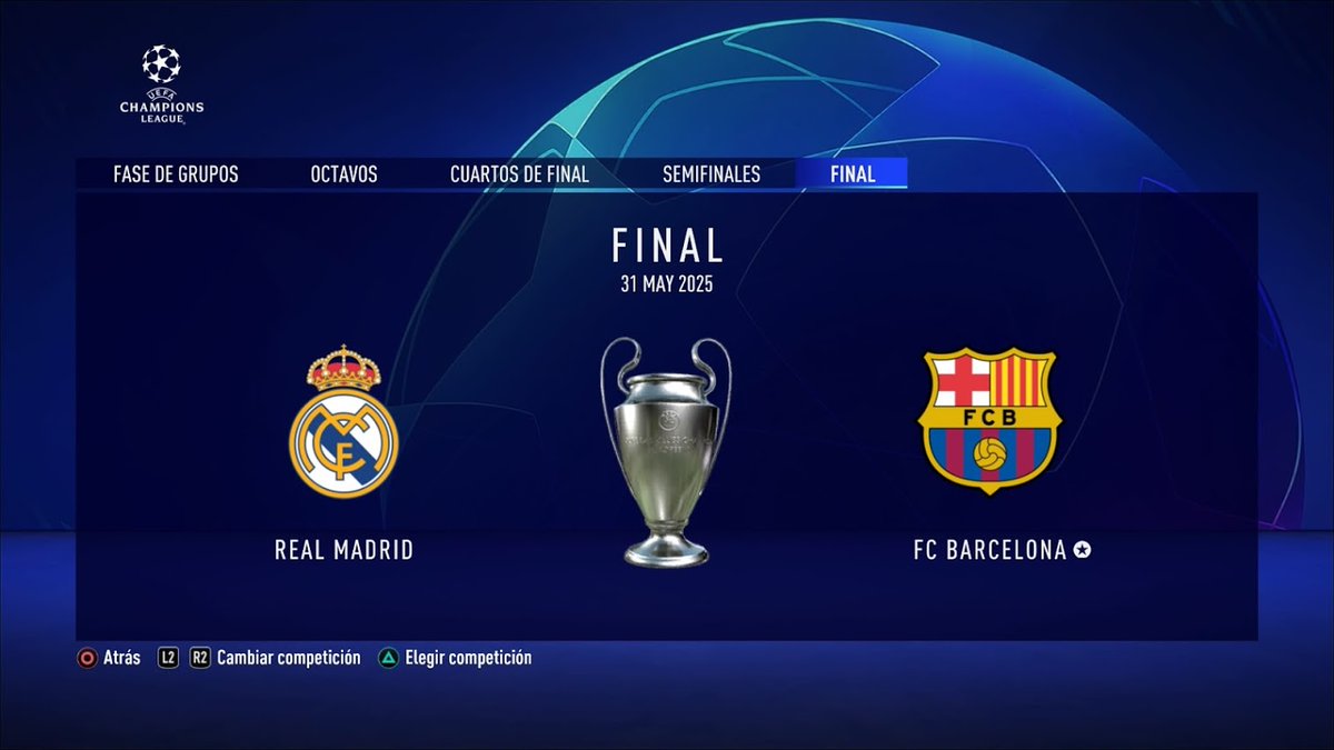 Aquí tendríamos que haber jugado los 3 partidos que quedaban (incluido el de Liga contra el Madrid), pero nos pudieron las ganas de ir a por la Champions, así que, con la Liga en el bolsillo, lo simulamos todo y saltamos al partido más importante de este modo carrera...