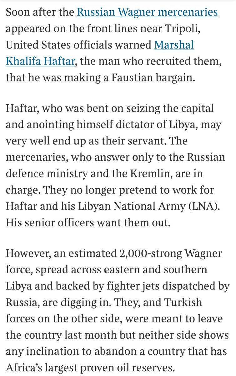 This is the group that Khalifa Haftar, in a Faustian pact, invited to Libya to help anoint him as dictator. Now, his nationalist senior officers rue that decision.