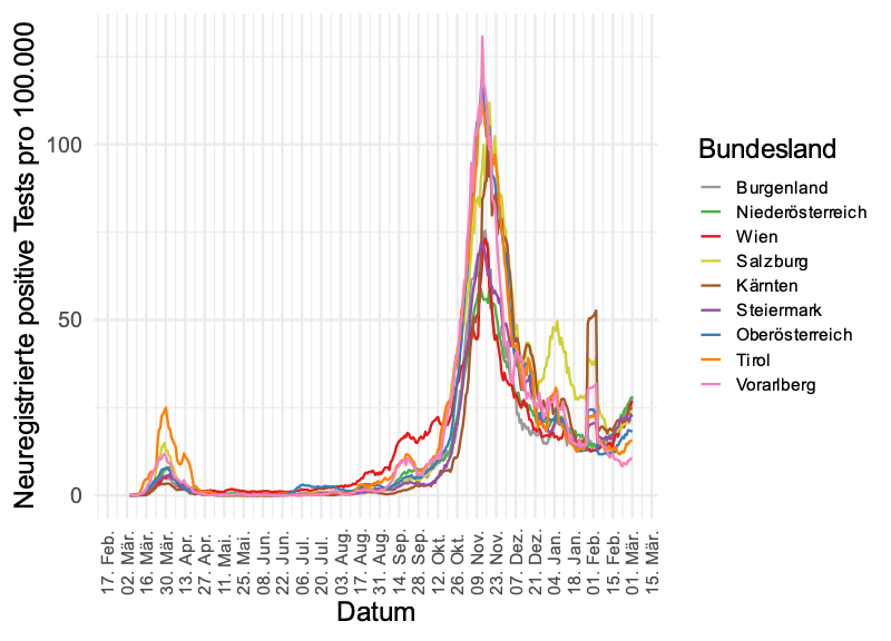 7-Tage-Mittel positive Tests - Österreich