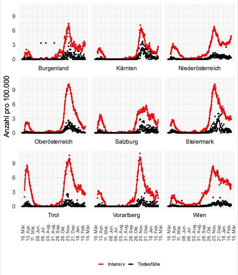 Intensivfälle und Verstorbene - Bundesländer (täglich)