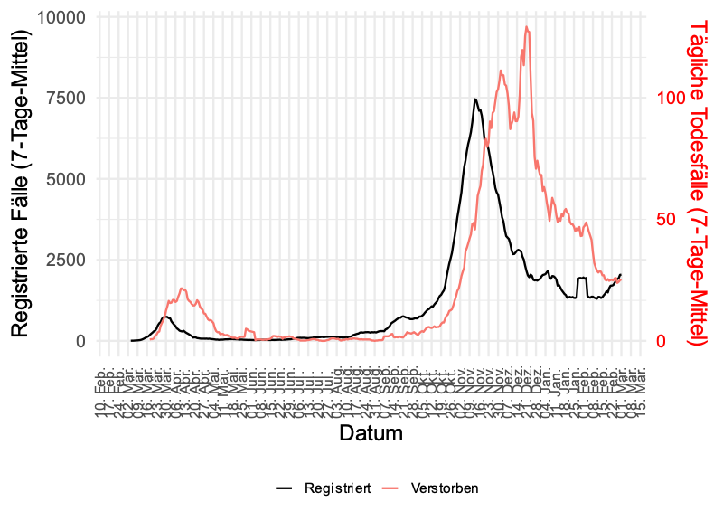 Österreich - Deutschland - COVID-Todesfälle (7-Tage-Mittel)